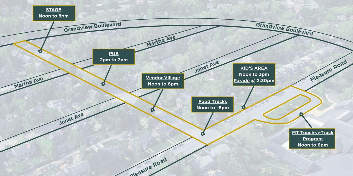 What Roads are Closed?: Pleasure Road (between Hilltop and Crest) and McGrann Blvd (from Grandview to Pleasure) will be closed to traffic all day